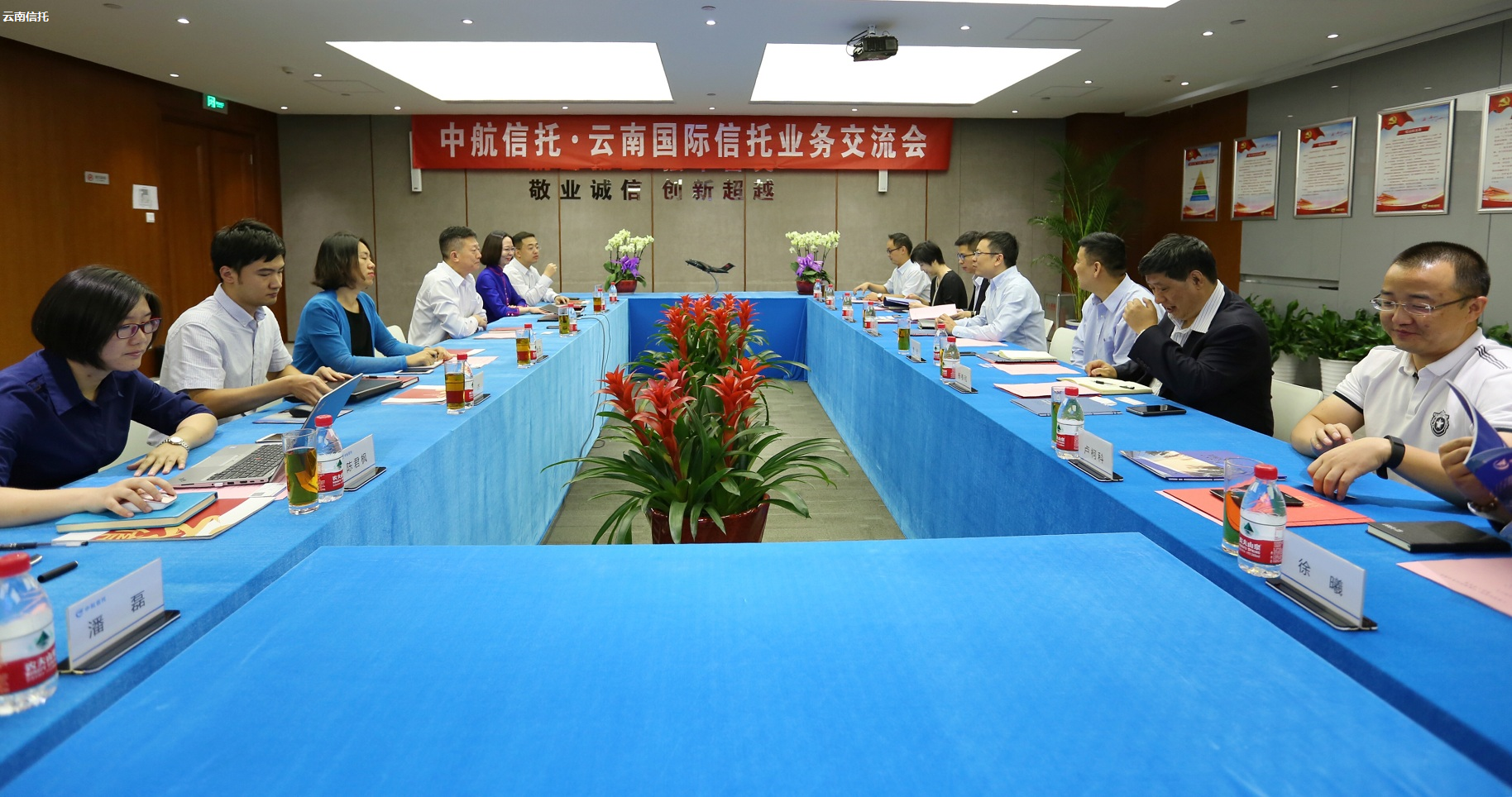 9月26日上午,云南国际信托有限公司(以下简称“云南信托”)总裁舒广、总裁助理贾岩携合规风控部、计划财务部、人力资源部、审计稽核部、综合管理总部负责人及投资运营中心相关人员一行,到访中航信托股份有限公司(以下简称“中航信托”)进行调研交流。中航信托董事长姚江涛、副总经理范华及广州业务部、人力资源部、财富管理总部、合规风控部、办公室相关负责人员参加了本次研讨会议。